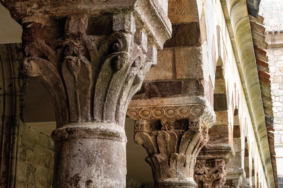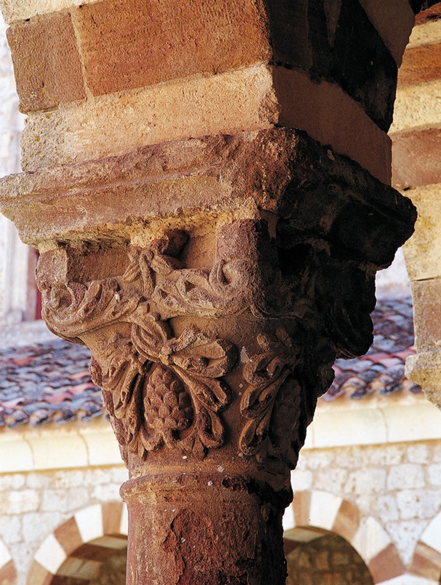 A pesar de que la breve cesión, ordenada en 1142 por el rey Alfonso VII, finalizaría apenas tres años después, a los monjes negros procedentes del corazón de Borgoña, les dio tiempo a dejar su firma para siempre en Cardeña. Su huella es fácil de rastrear en un claustro en el que destaca la llamativa bicromía en las dovelas de los arcos. También es perceptible el aire galo en las columnas de un solo fuste rematadas por capiteles no figurativos y en los típicos medallones y rosetas cluniacense que decoran sus enjutas.