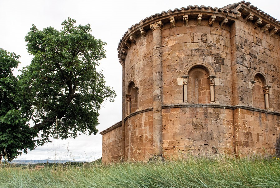 Merece la pena detener la mirada en el capitel que representa una diabólica máscara de cuya boca brotan unos retorcidos tallos que terminan en unos primorosos remates vegetales. Esta pericia formal que demuestra uno de los maestros románicos de Hermosilla —los expertos hablan del maestro de Abajas—se va a repetir en los variados capiteles que decoran tanto el exterior como el interior de la cabecera románica.