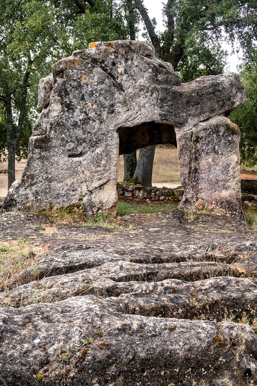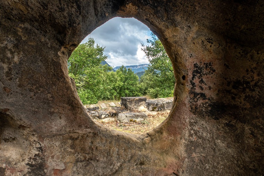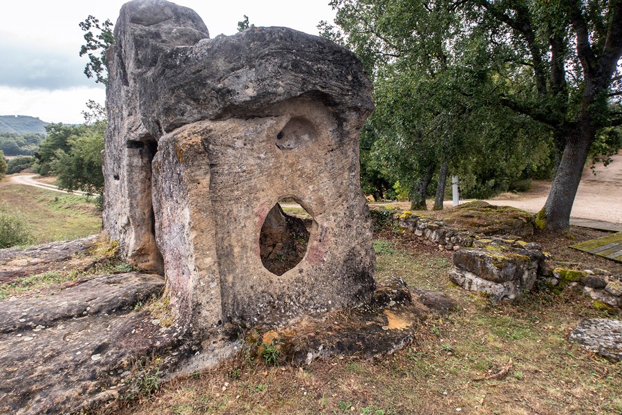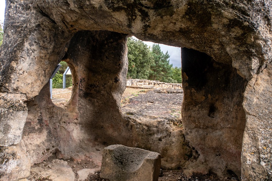 Por eso no es nada extraño que el recinto sagrado y la extensa necrópolis, situados sobre un alargado montículo rocoso, se convirtieran en el punto neurálgico de la comunidad. El venerable enclave, al que se accedía desde la zona habitada por una escalera tallada en la roca, está presidido por un edículo excavado en un peñón de roca arenisca, que antes de servir de iglesia a las gentes del poblado y de la necrópolis altomedieval pudo ser un antiguo eremitorio visigodo.