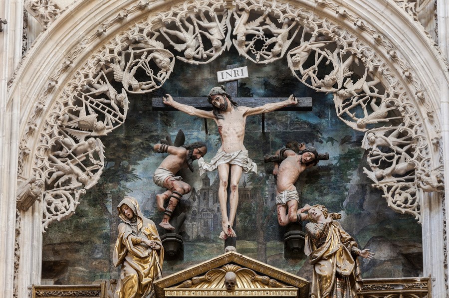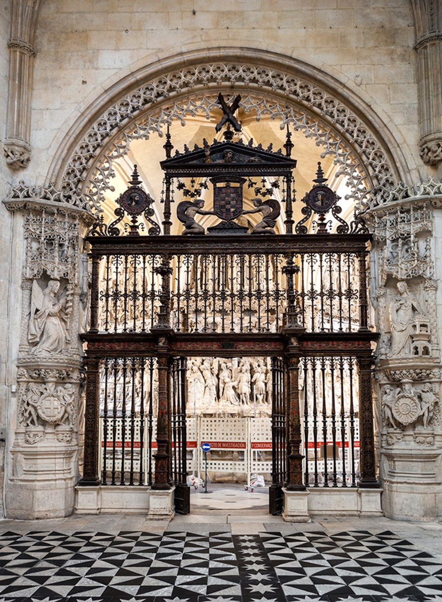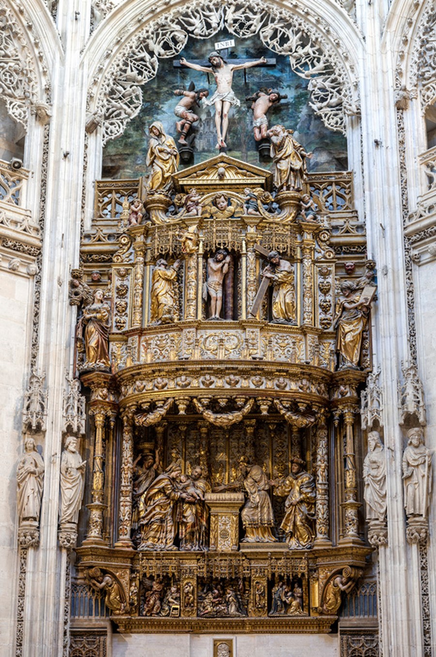 Un suntuoso arco de entrada, protegido por una notable reja —sin duda la más bella de toda la Catedral— forjada por Cristóbal de Andino en 1523, permite acceder al interior de una capilla repleta de tesoros artísticos. La Catedral atesora uno de los más señalados conjuntos del arte del hierro español. Además de las que perfilan la nave central y el coro no hay una sola capilla del templo burgalés que no cuente con su reja: esa cortina transparente que protege y a la vez deja ver a su través.