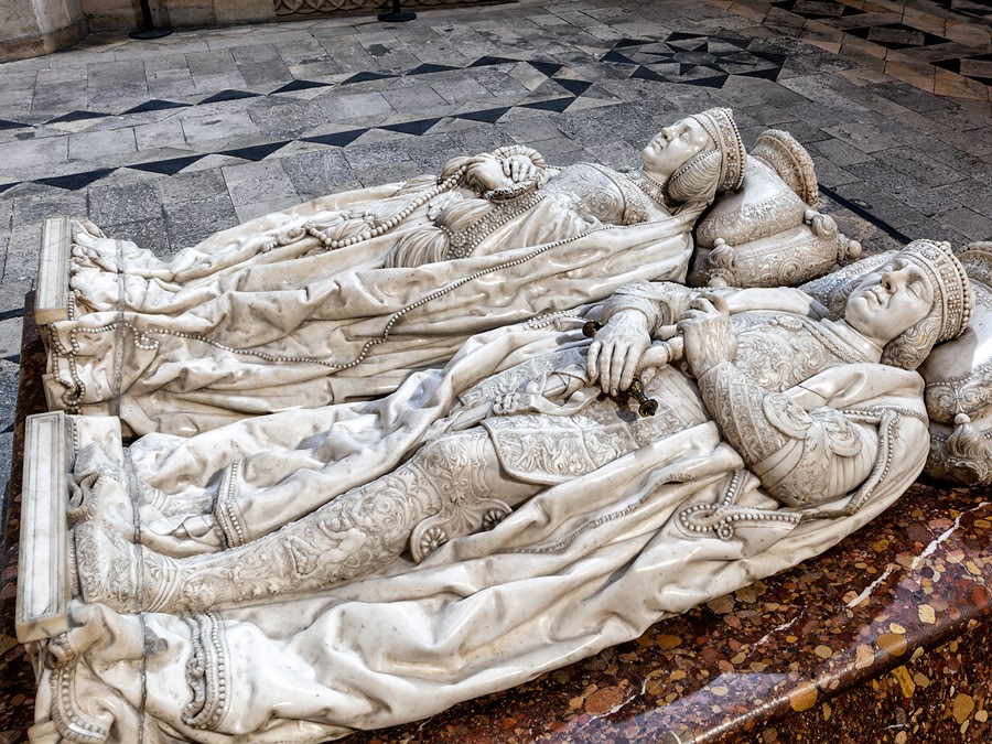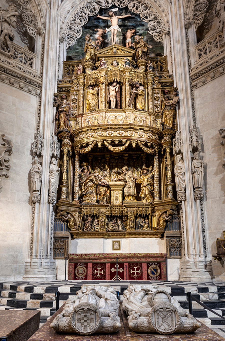 En el centro de la capilla y justo debajo de la calada bóveda estrellada se localiza el sepulcro compartido por los Condestables de Castilla. La mayoría de los expertos se inclinan por pensar que el escultor que labró tan maravillosa obra fue Felipe de Bigarny. Un excelente mármol de Carrara permitió al artista demostrar una pericia técnica casi insuperable. En las figuras yacentes se da una síntesis perfecta entre el sereno realismo de sus rostros y el minucioso acabado de vestimentas y adornos.