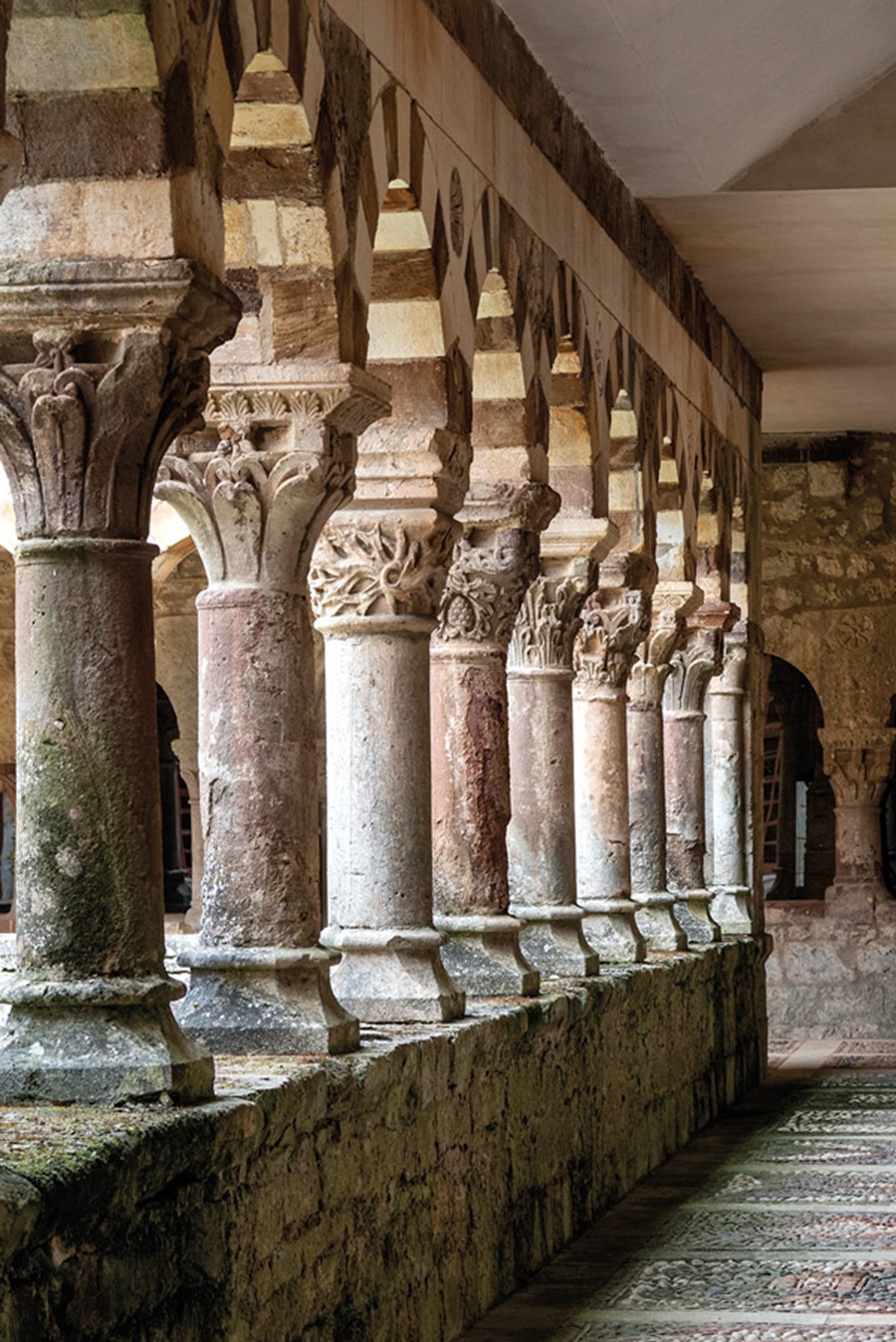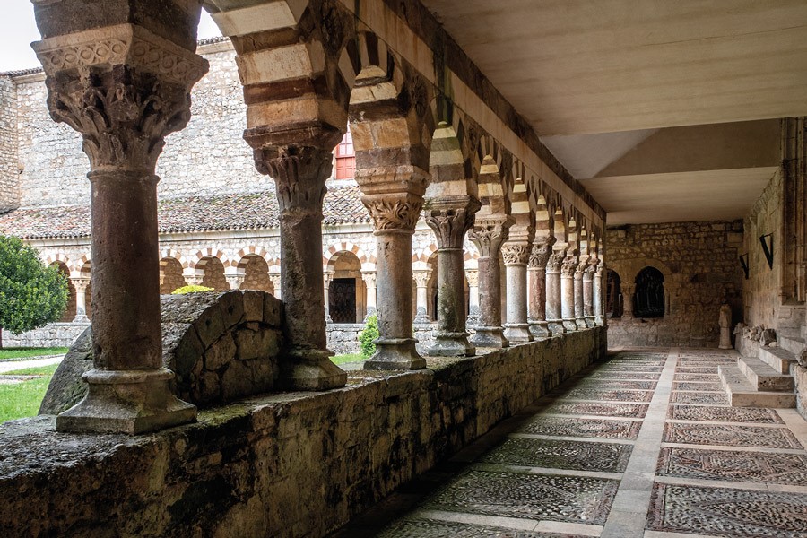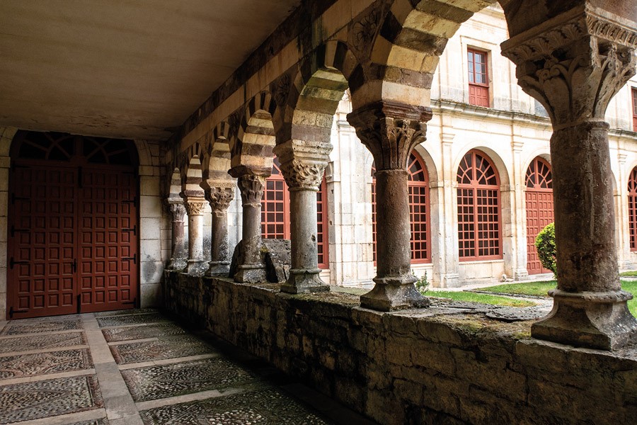 A pesar de que la breve cesión, ordenada en 1142 por el rey Alfonso VII, finalizaría apenas tres años después, a los monjes negros procedentes del corazón de Borgoña, les dio tiempo a dejar su firma para siempre en Cardeña. Su huella es fácil de rastrear en un claustro en el que destaca la llamativa bicromía en las dovelas de los arcos. También es perceptible el aire galo en las columnas de un solo fuste rematadas por capiteles no figurativos y en los típicos medallones y rosetas cluniacense que decoran sus enjutas.