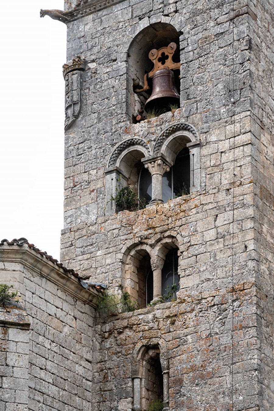 Estas transformaciones relegaron las obras arquitectónicas medievales a los elementos conservados en el claustro de los Mártires y en la torre de la iglesia. De diferentes estudios se deduce que los cuatro cuerpos inferiores de la torre de planta cuadrada son contemporáneos a la iglesia prerrománica y que el quinto nivel fue añadido durante la segunda mitad del siglo XII. Los seis niveles de la torre, que parece que en origen fue exenta, cuentan con seis cuerpos de ventanas que de abajo arriba denotan la evolución estilística desde el prerrománico hasta el románico pleno. El último cuerpo, que eleva la altura del torreón a los 27 metros, se levantó a la vez que la iglesia gótica.