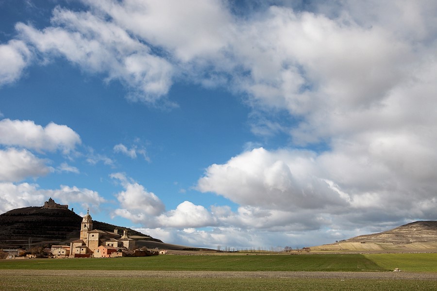 Bajo la sombra de su histórico castillo se extiende el alargado perfil de Castrojeriz, importante hito jacobeo que llegó a contar con siete hospitales para atención de los peregrinos. El paso del Camino de Santiago ha condicionado la historia, el trazado urbano —con sus casi dos kilómetros está considerado como uno de los más largos de toda la Ruta— y el rico patrimonio que conserva esta milenaria villa de origen celtibérico y romano. Entre sus monumentos, muy vinculados a los mercaderes de lana castellanos de los siglos XV y XVI, destacan la excolegiata de la Virgen del Manzano y la imponente iglesia de San Juan.