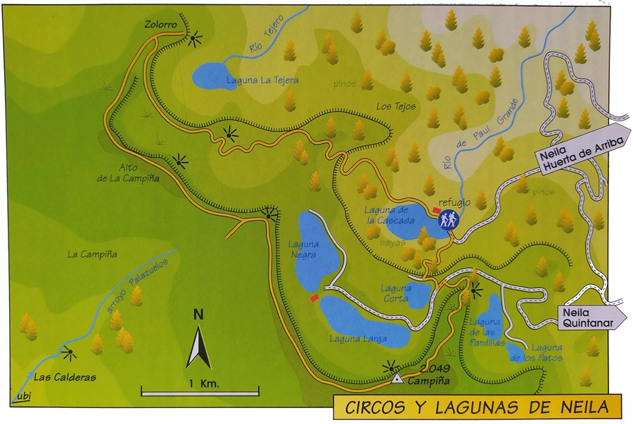 La sierra de Neila es un pequeño conjunto montañoso, situado en el extremo sureste de la provincia de Burgos, que se levanta entre los altivos picos de Urbión y la extensa sierra de la Demanda. Su accidentada orografía de crestas y cantiles jurásicos, cubierta en su mayor parte por centenarios bosques de pino albar, aparece presidida por un espectacular rosario de lagunas de origen glaciar que se desgranan a los pies de los 2.049 metros del Campiña.