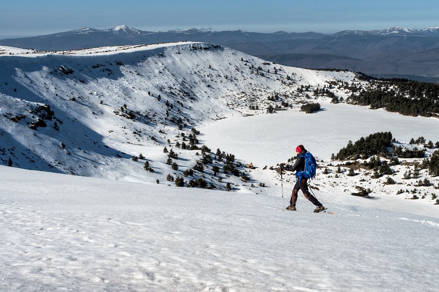 Con un pequeño esfuerzo, es la última subida del recorrido, se alcanza la loma que separa las cuencas hidrográficas del Ebro y el Duero —salvo la de la Tejera las lagunas de Neila vierten sus aguas al Mediterráneo— y que sin dificultad nos permite alcanzar el borde del circo de la laguna Negra.