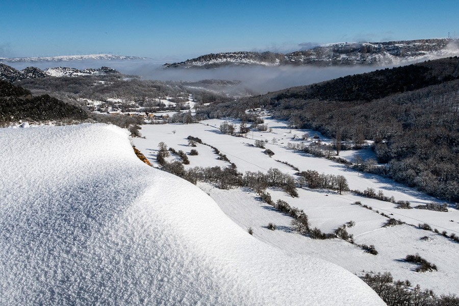 En primavera, en verano, en otoño y, cómo no, en invierno, adornado por una intensa nevada, el pequeño pueblo de Crespos destila por sus cuatro costados la esencia del tradicional mundo rural. En el confín más apartado del Valle de Manzanedo y escondido en un profundo y pintoresco vallejo, en el que se alternan los quebrados y desafiantes cortados rocosos con los mágicos y umbríos bosques de hayas y quejigos, se localiza este idílico pueblo: uno de los conjuntos rurales mejor conservados de toda la comarca de Las Merindades.