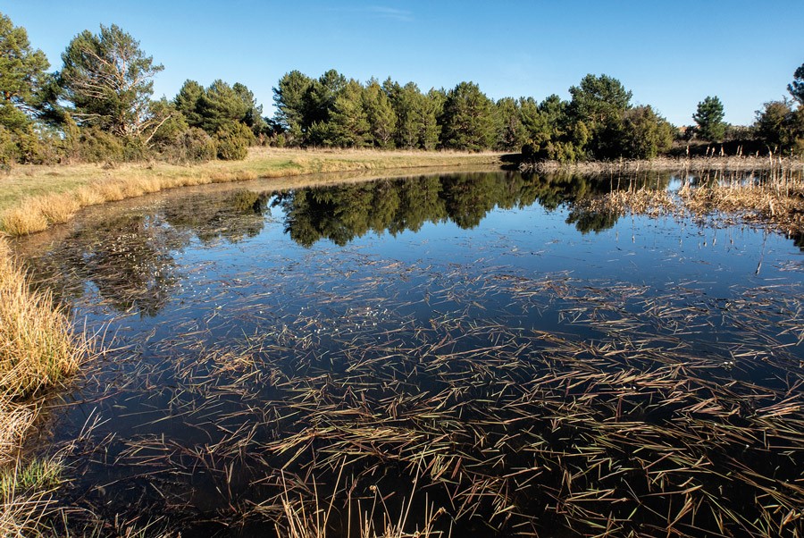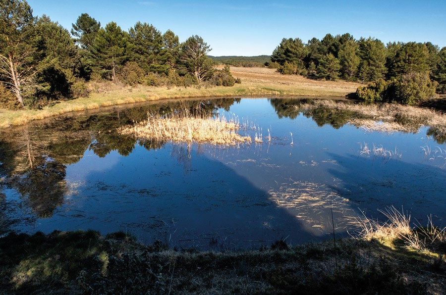 El Poceairón burgalés se encuentra a poco más de un kilómetro de Aldea del Pinar, tiene una forma casi circular y un diámetro de unos 50 metros. El nivel de sus aguas no es constante ya que está sometido a las fluctuaciones estacionales del kárstico acuífero calizo del que se nutren. Rodeado de pinos, la primavera es la mejor época para admirar este mágico humedal ya que a partir del verano y al bajar las aguas su superficie se llena de algas y juncos que solo respetan el más profundo centro del pozo. Quizá por ello y por el ligero gusto salobre de sus aguas los lugareños también lo conocían como ojo de mar. El modesto arroyo por el que desagua el Poceairón es tributario del río Muyeuelo que a su vez desemboca en el río Lobos, justo donde comienza su espectacular y serpenteante cañón calizo.