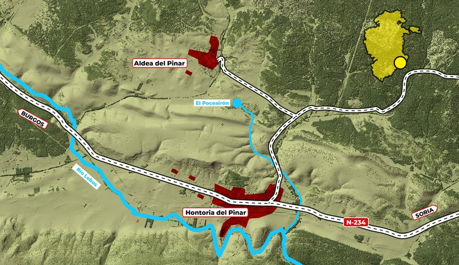 Pozairón, Pozo Airón o Poceairón, así viene reflejado en el mapa oficial de IGN, es como se conoce una pequeña laguna de origen kárstico situada a un paso de Aldea del Pinar. Preñado de leyendas, este humedal recibe el nombre del dios Airón, deidad prerromana del inframundo, del transito al más allá, pero también de la vida renacida, que era muy venerado por el pueblo celta de los pelendones, que hace unos 2.500 poblaba la actual comarca burgalesa de Pinares.