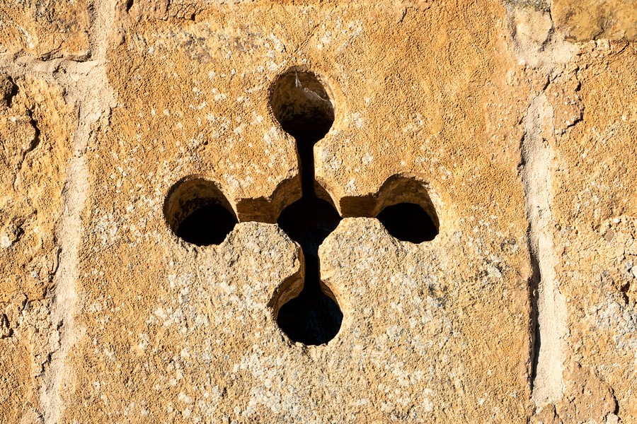 Sus elementos más destacados se concentran en el arco de triunfo, que conserva su primigenio trazado de marcada herradura, y en la sencilla tronera, con forma de cruz pometeada, que se abre en el bloque monolítico que hace las veces de ventana del santuario. Sobre el santuario se alza un campanario de época posterior.