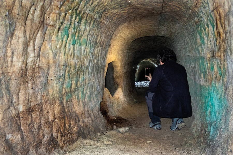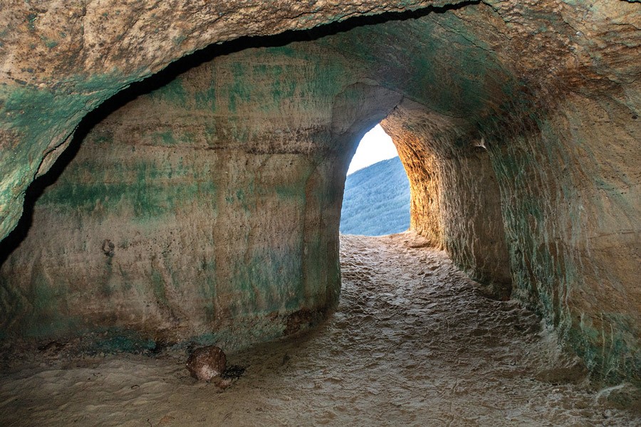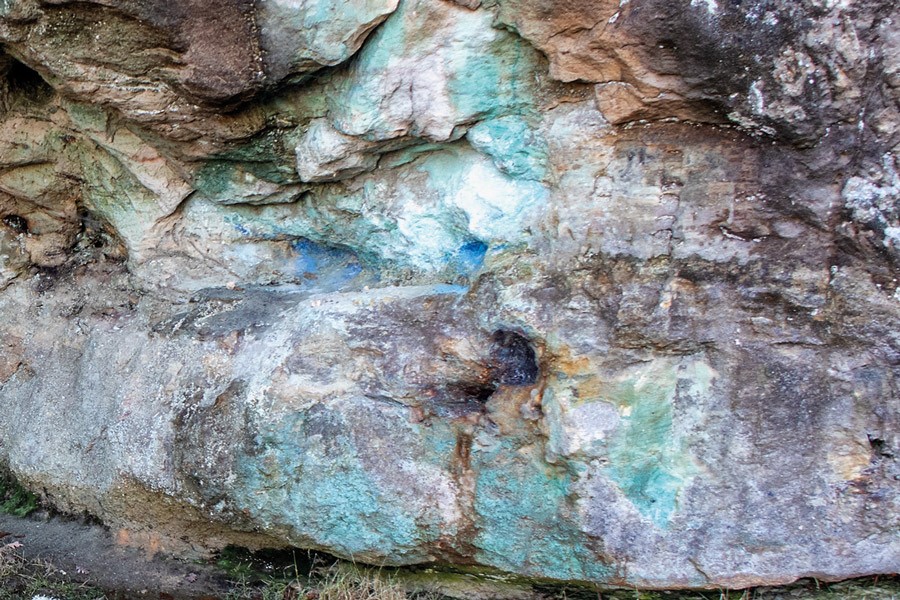 Llama la atención la bien trabajada red de socavones y galerías que penetran en el interior del paquete de areniscas y microconglomerados que afloran en las laderas de Peña Otero. Así mismo, son visibles los socavones excavados en las zonas mineralizadas y muy llamativos los endurecidos niveles ferruginosos que protegen de la erosión las arenas infrayacentes. A las minas se puede entrar con mucho cuidado para observar los restos de azurita y malaquita que pintan de tonos azulados y verdosos las paredes.