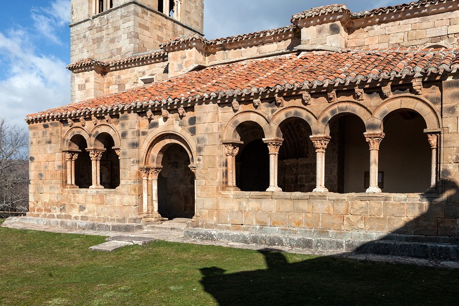 La iglesia parroquial de Jaramillo de la Fuente es una de las joyas del románico burgalés. Además del ábside y la torre, el principal elemento del templo es su elegante galería porticada con siete arcos.