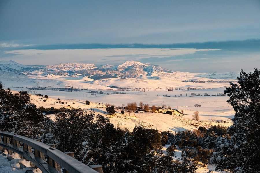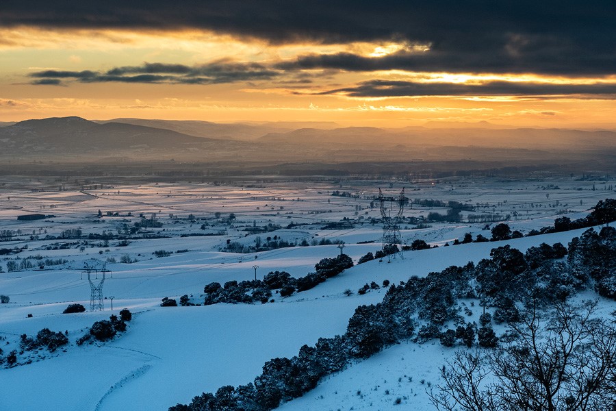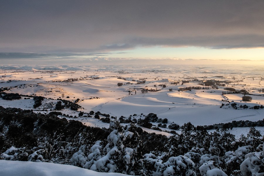 Con permiso del mirador de Poza de la Sal, el del Portillo de Busto es el mejor lugar para disfrutar de los paisajes de La Bureba. Este privilegiado belvedere se localiza a mil metros de altura en una de las cumbres de los Montes Obarenes, el alargado murallón rocoso que perfila por el norte esta personalísima comarca burgalesa. Cualquier época es buena para asomarse hacia sus infinitas panorámicas, pero, si el invierno viene cargado de nieve, la experiencia se convierte en única e inolvidable.