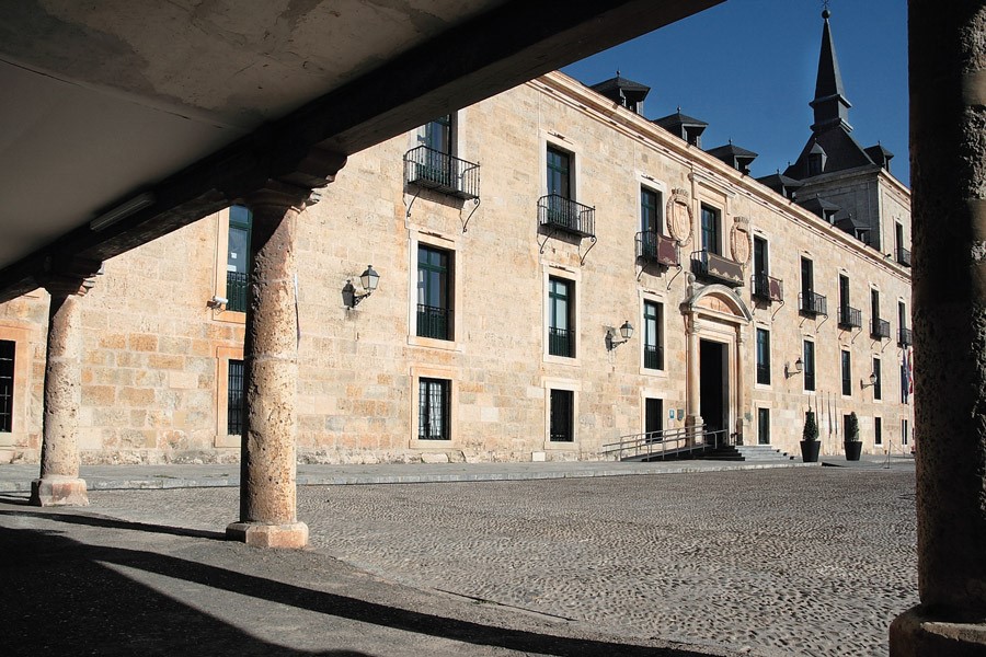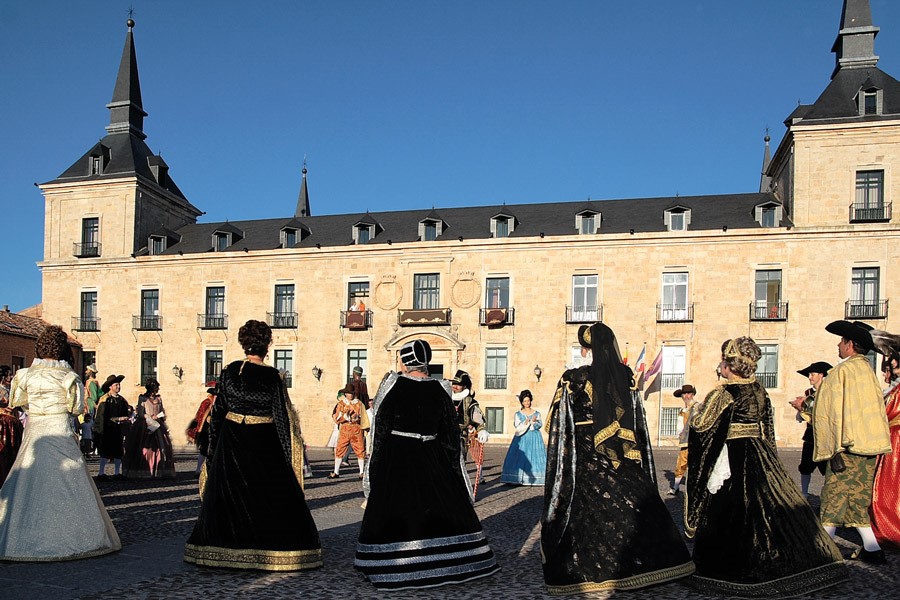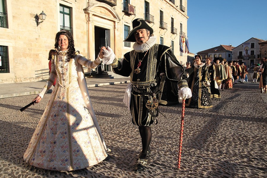 Frente a la fachada del palacio se abre una plaza —una de las más grandes de España— concebida por el duque de Lerma como un gigantesco escenario para la celebración de los magnos espectáculos con los que obsequiaba al monarca y al resto de la corte en sus habituales estancias en la villa. A estas famosas manifestaciones barrocas —teatro de comedias, conciertos de música, corridas de toros y juegos de cañas— solían acudir artistas, músicos o escritores de la talla de Lope de Vega, Calderón de la Barca y Góngora.
