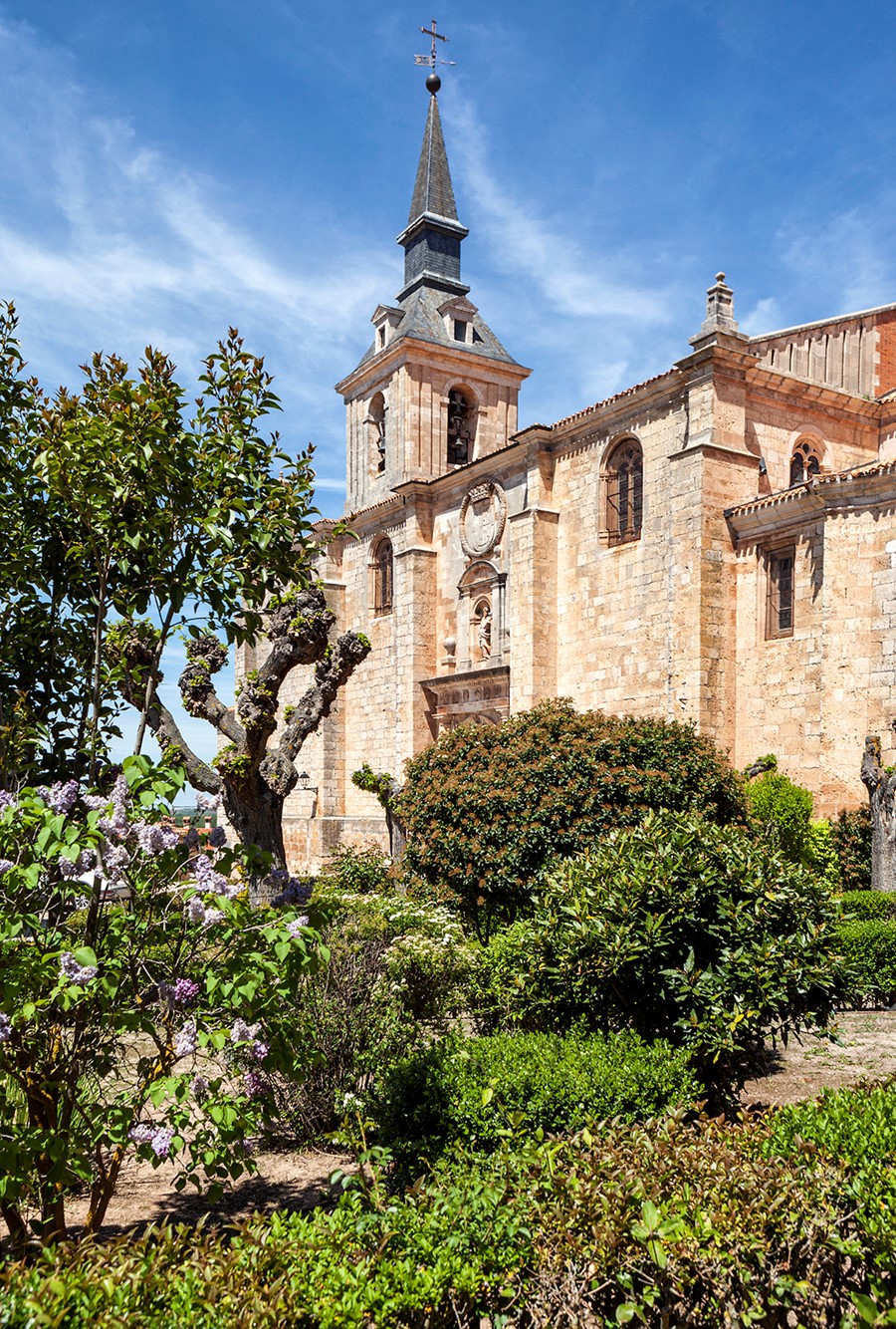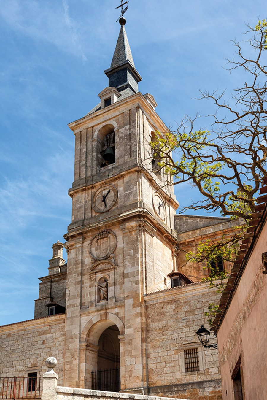 Aunque se respetaron algunos elementos renacentistas y básicamente se mantuvo la planta de salón con tres naves, el añadido de una cabecera con girola, imitando los modelos catedralicios, contribuyó a que el edificio resultante cumpliera con creces las expectativas del noble y el prelado. A los pies de la colegiata se yergue una elevada torre, también de principios del siglo XVII, que está rematada con el característico chapitel de pizarra propio del estilo herreriano de los Austrias. Desde hace unos años una escultura recuerda al escritor José Zorrilla muy vinculado a Lerma en su juventud. Incluso parece que el autor de “Don Juan Tenorio” se enamoro por primera vez de una joven y bella lermeña.