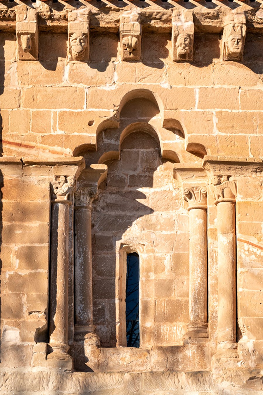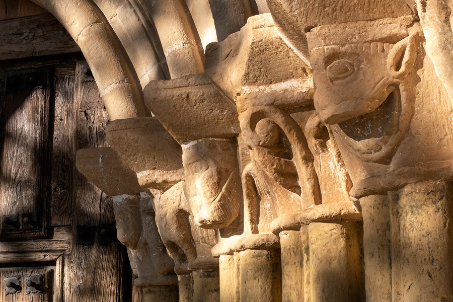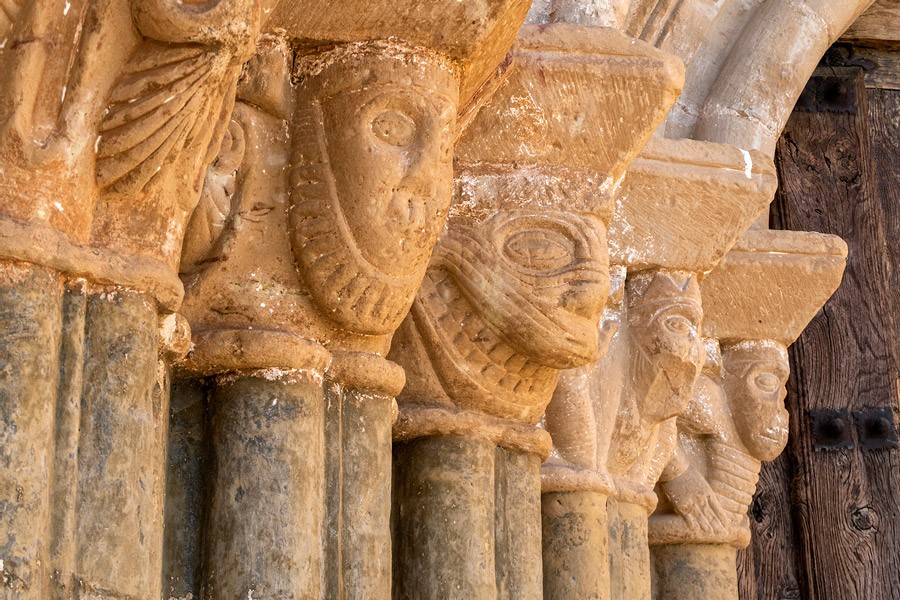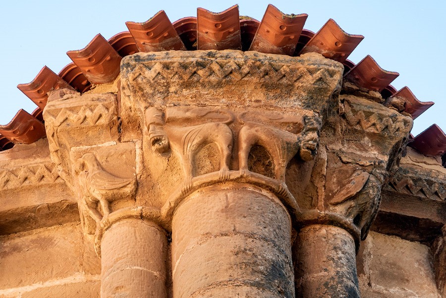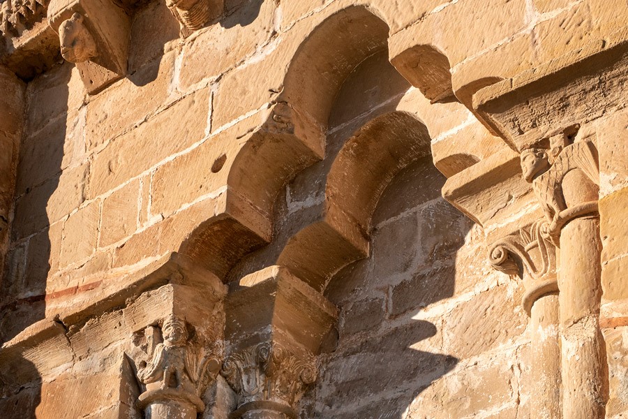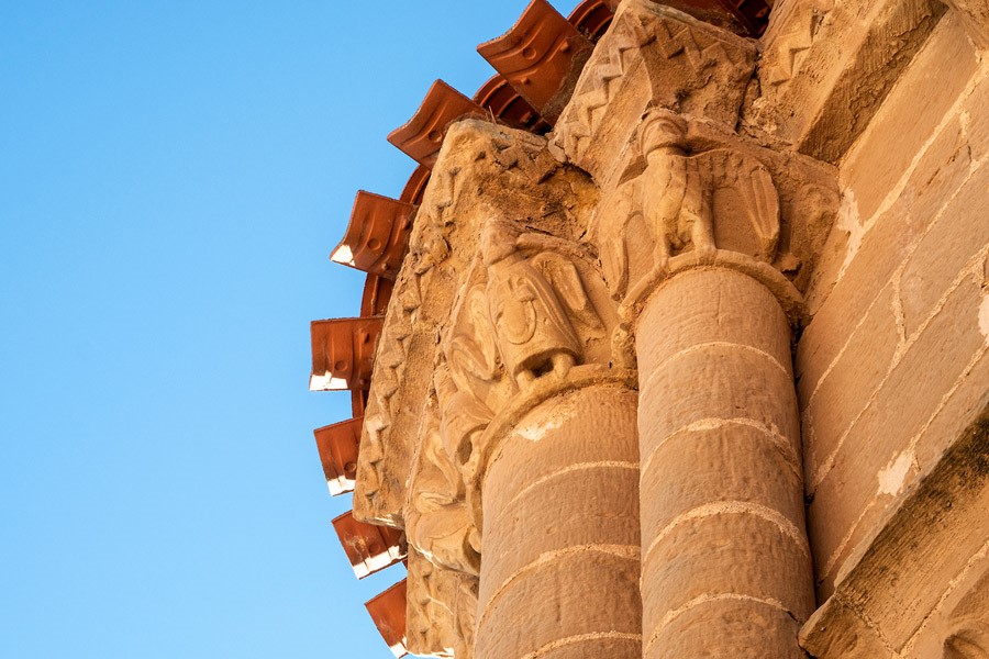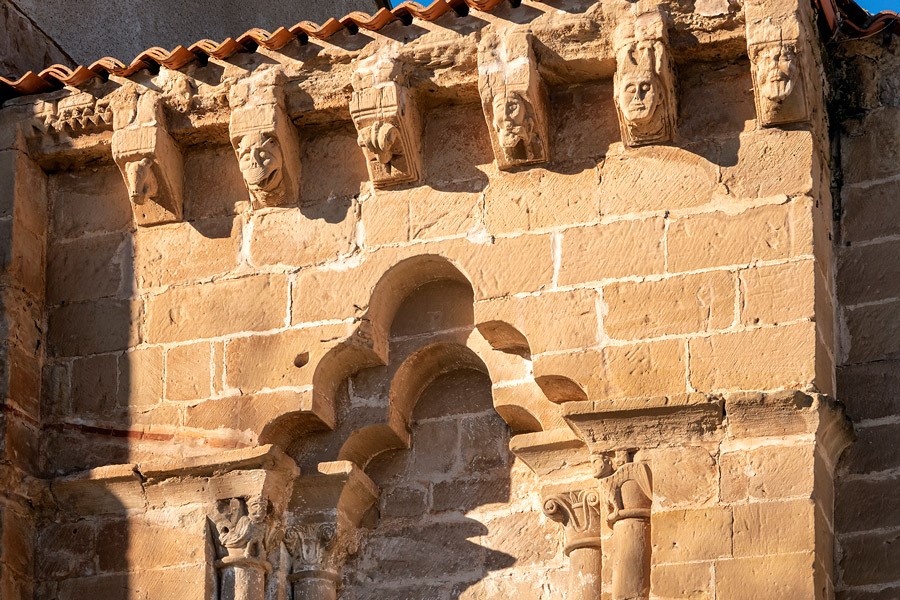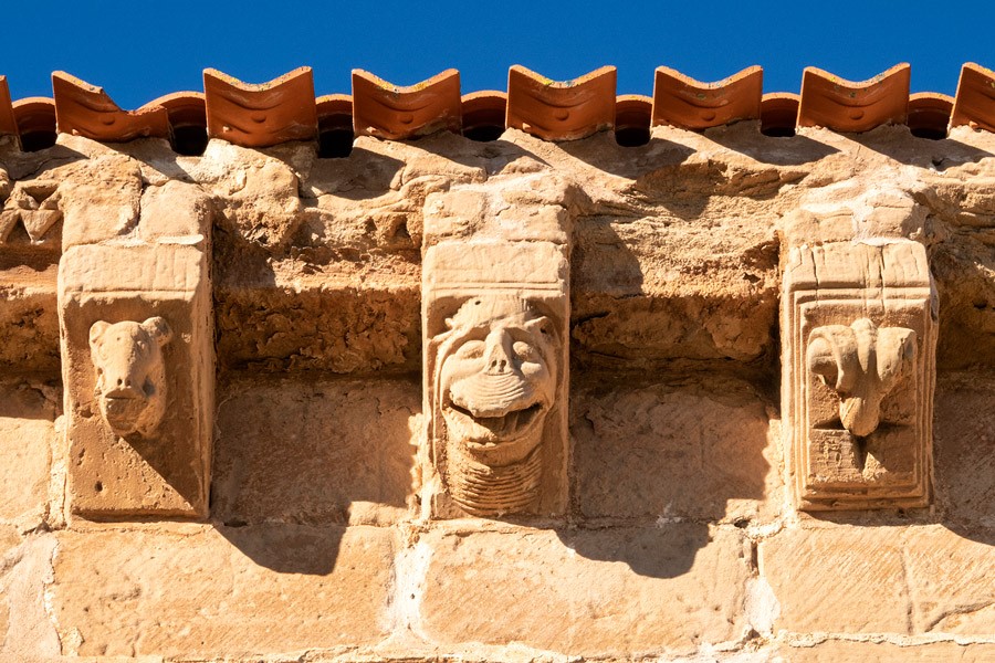 Los numerosos canecillos que soportan la cornisa del ábside y el presbiterio —decorada con un relieve de zigzag— están ejecutados con la misma talla, un poco ruda, del resto del repertorio iconográfico del templo. Predominan los rostros humanos con actitudes grotescas y los animales reales y fantásticos. El interior de la iglesia, que conserva algunos elementos románicos sobre todo en la cabecera, fue muy reformado en los siglos posteriores.