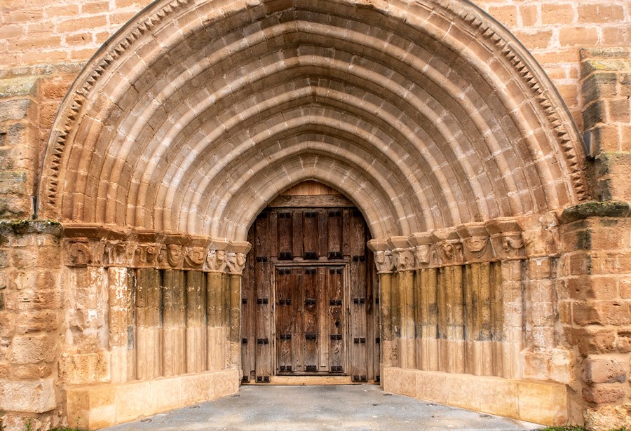 Tras un derrumbe de la torre bajo la que se alza y una completa rehabilitación del templo —se eliminó la sacristía adosada al exterior y el recrecido de tapial y entramado de la cabecera— se puede disfrutar de la portada de la iglesia. De llamativo abocinamiento sus arcos y arquivoltas lucen un apuntado perfil que confirma que los maestros que trabajaron en su fábrica ya conocían las claves del arte gótico que poco a poco se extendía por Castilla. En la iconografía de los motivos que decoran los capiteles de la portada de Navas de Bureba se alternan las grotescas máscaras, con variados animales fantásticos y monstruosos. En los capiteles más próximos al arco de entrada se reconoce a sendos atlantes que parecen sostener el peso del edificio.