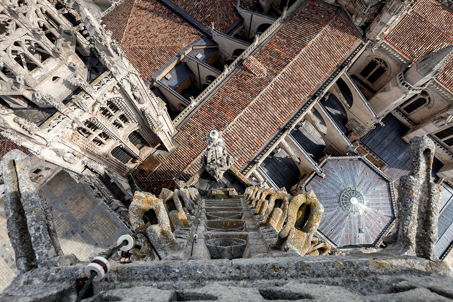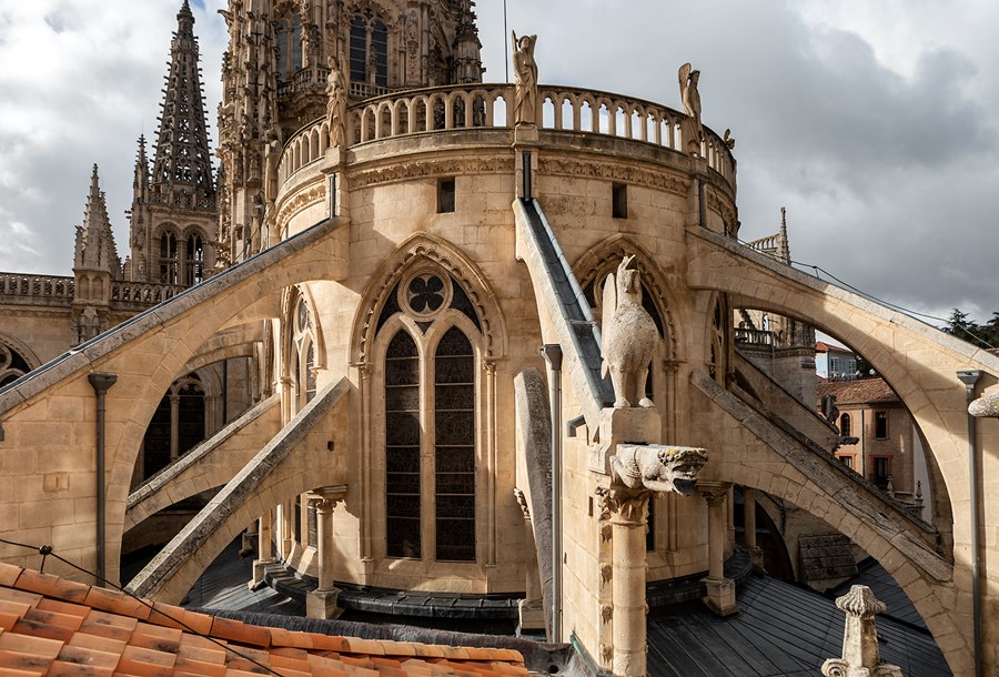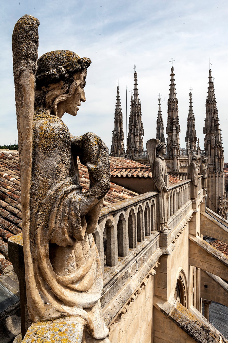 La Catedral de Burgos es uno de los monumentos más icónicos y con mayor personalidad del casi inabarcable patrimonio español. Visitada cada año por varios cientos de miles de personas —en 2019 fueron exactamente 372.000—, su interior ofrece un completo recorrido que permite disfrutar de todas las maravillas artísticas atesoradas a lo largo de sus ocho siglos de historia. Pero el templo tiene unas zonas que, de momento y por seguridad, son inaccesibles para los turistas. Es el caso del exterior de las cubiertas de las naves, a las que solo se puede llegar subiendo por unos estrechos, claustrofóbicos y mareantes husillos. Hoy queremos compartir unas imágenes poco conocidas para cuya obtención el privilegiado fotógrafo asegura que se tuvo que dejar el vértigo en casa. Y nos lo cuenta en primera persona.