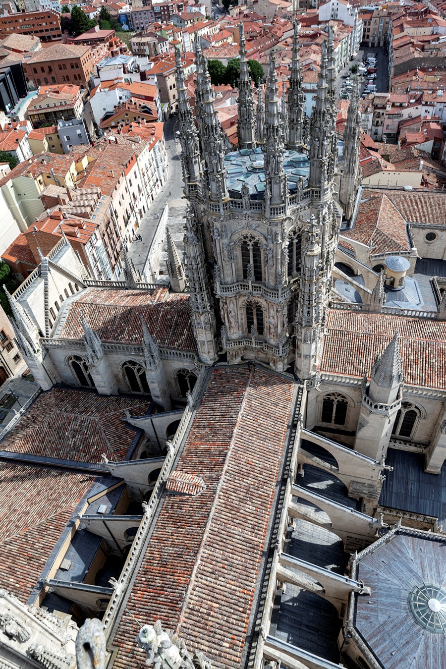 Las agujas que rematan las torres de la Catedral se divisan, inconfundibles, desde cualquier lugar de la ciudad de Burgos. También desde bastantes kilómetros de distancia ya que eran una especie de faro terrestre para señalar la presencia del templo y servir de guía, sobre todo, a los peregrinos que recorrían el Camino de Santiago. Pero para contemplar la inusual imagen que acompaña estas líneas hay que saber encontrar otro camino iniciático: el que desde el interior de la basílica asciende hasta el remate de la nave central.
