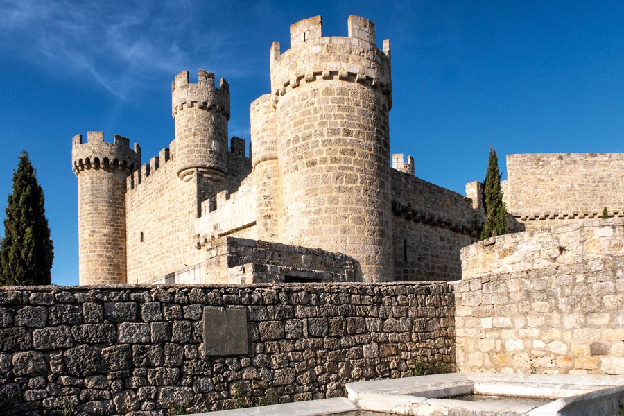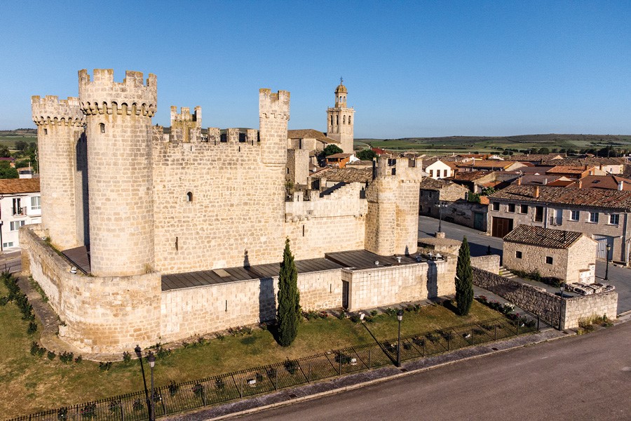 A la entrada de Olmillos de Sasamón se alza un llamativo castillo que perteneció a la familia de judíos conversos de los Cartagena. Construido en la segunda mitad del siglo XV, en su planta sobresale un recinto interior, con torres circulares, balcones amatacanados y garitones, rodeado por una sencilla barbacana.