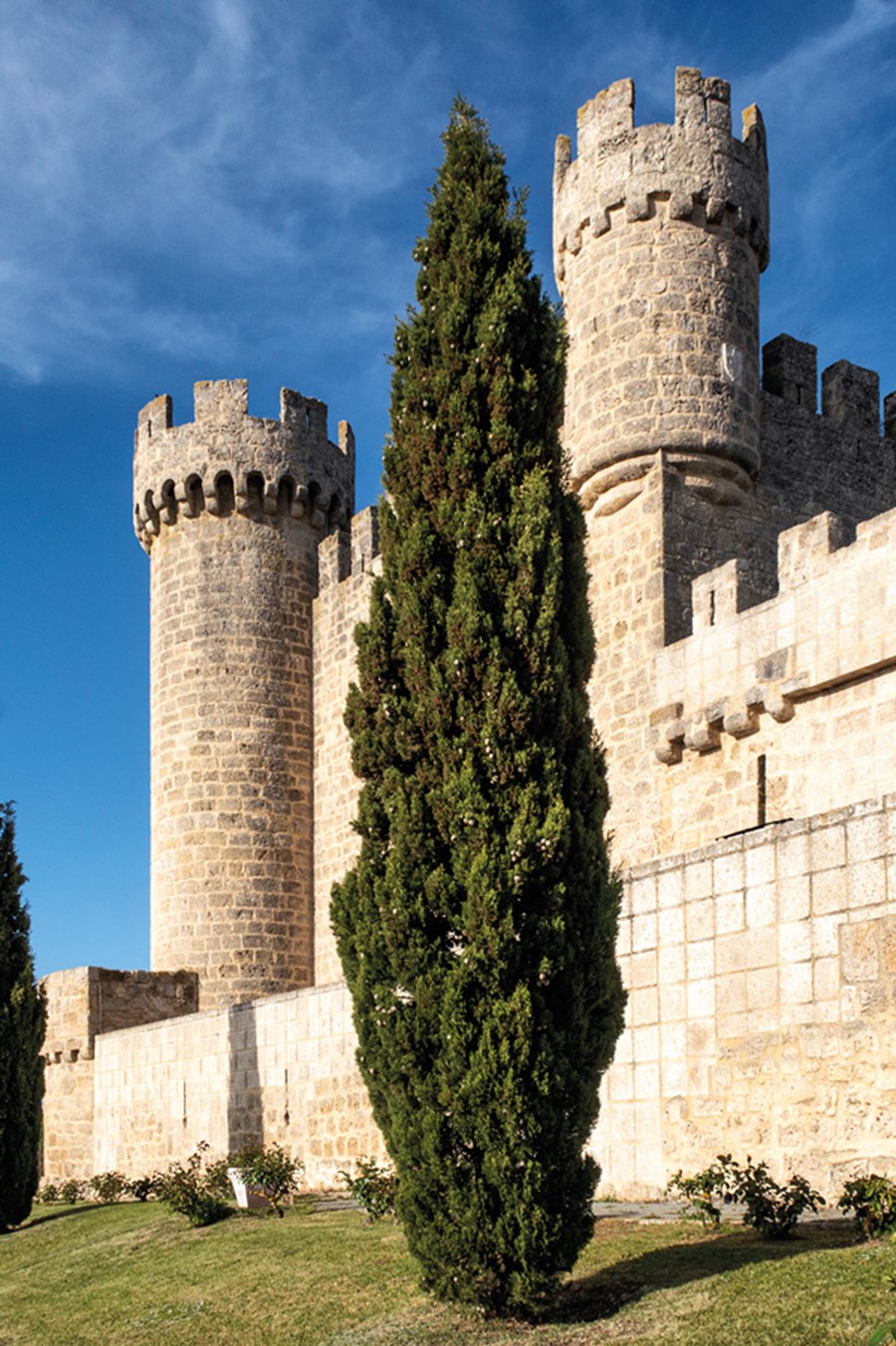 Pedro de Cartagena, descendiente suyo y regidor de la ciudad de Burgos (equivalente a los actuales alcaldes), puso la primera piedra del castillo de Olmillos de Sasamón a mediados del siglo XV. Aunque a primera vista presenta un recio aspecto militar, al que contribuyen las tres marcadas torres circulares, los balcones amatacanados, los airosos garitones situados en dos de sus esquinas y el almenado que recorre todos sus muros, el castillo fue más bien una casa-fuerte desde la que los Cartagena controlaron sus posesiones, hicieron valer sus derechos sobre los vecinos del pueblo y, sobre todo, mostraron al mundo su ascenso y consolidación social. Todavía son visibles, labradas en los muros, varias flores de Lis, el símbolo elegido por la familia judeoconversa de los Cartagena.