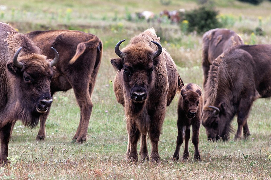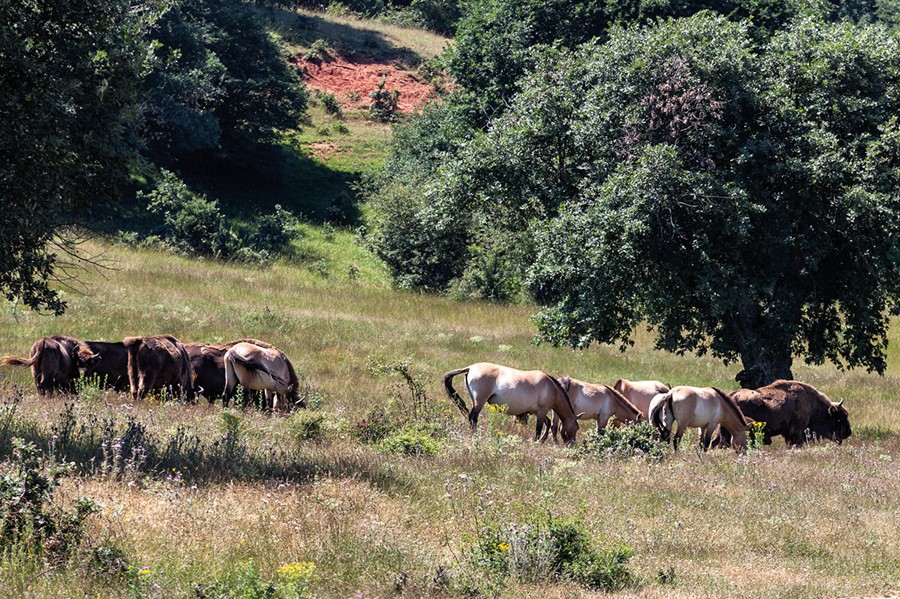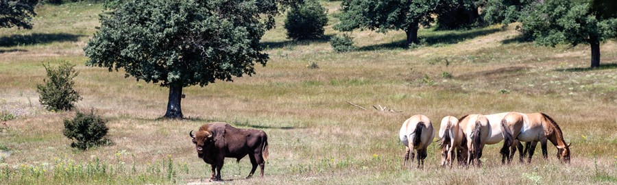 Parece imposible, pero a menos de 20 kilómetros de la Catedral de Burgos y arropados por los extensos robledales de Salgüero de Juarros, pastan en libertad, como en pleno Paleolítico Superior, varias manadas de bisontes europeos, caballos de Przewalski, uros y tarpanes.