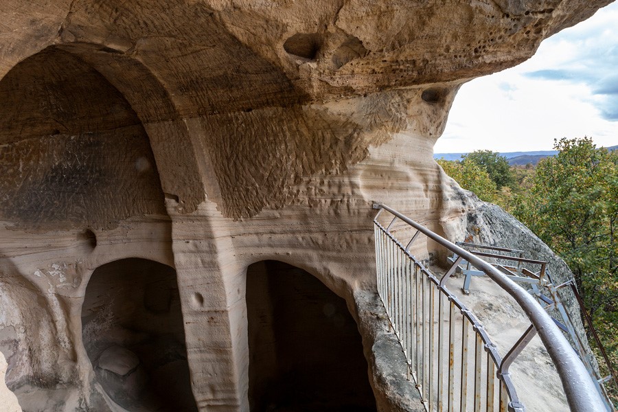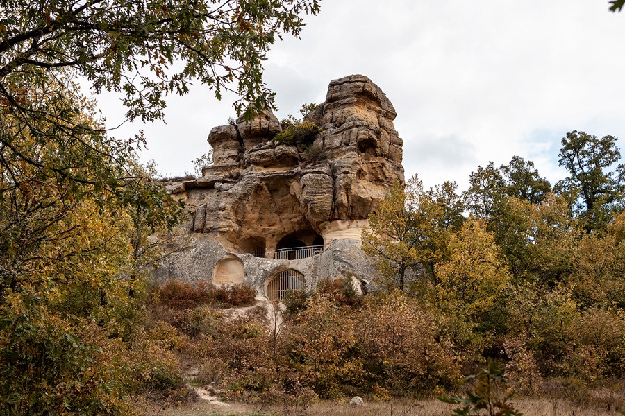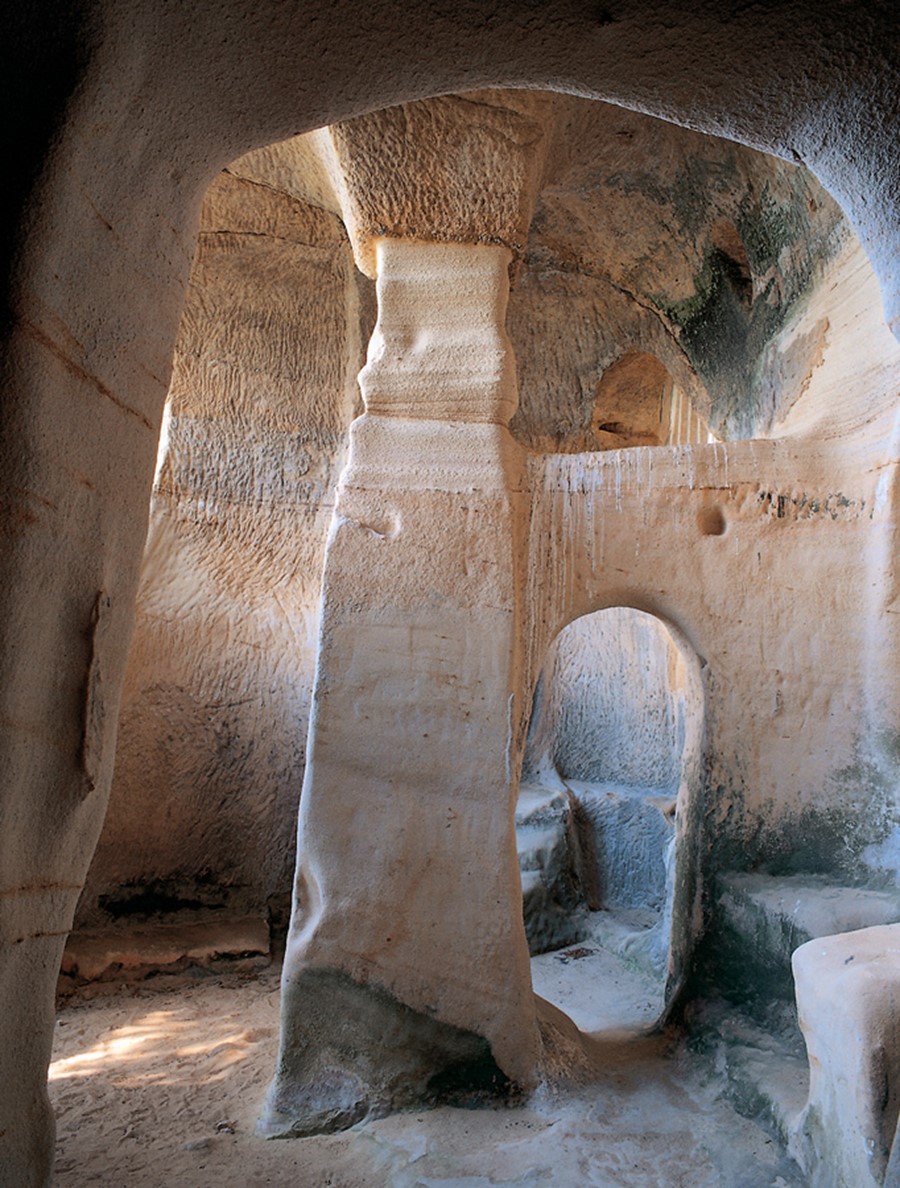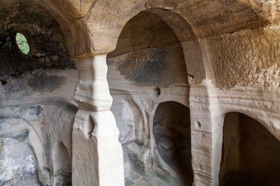 No se puede entrar para no dañar la estructura que está excavada en una piedra arenisca muy frágil. Pero se puede subir, por una escalera metálica adosada en el exterior, hasta la tribuna superior. Desde allí se ve muy bien todo el interior del eremitorio y el paisaje del entorno
