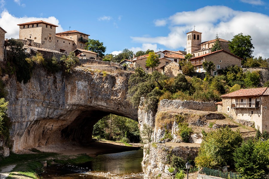 Su caserío se organiza en torno a uno de los más singulares fenómenos de la naturaleza española: el puente excavado por el río Nela en una densa barrera de roca caliza sobre el que se encuentran el palacio de los Porres y la iglesia románica de San Pelayo del siglo XI. Toda una experiencia internarse dentro del gigantesco arco natural.