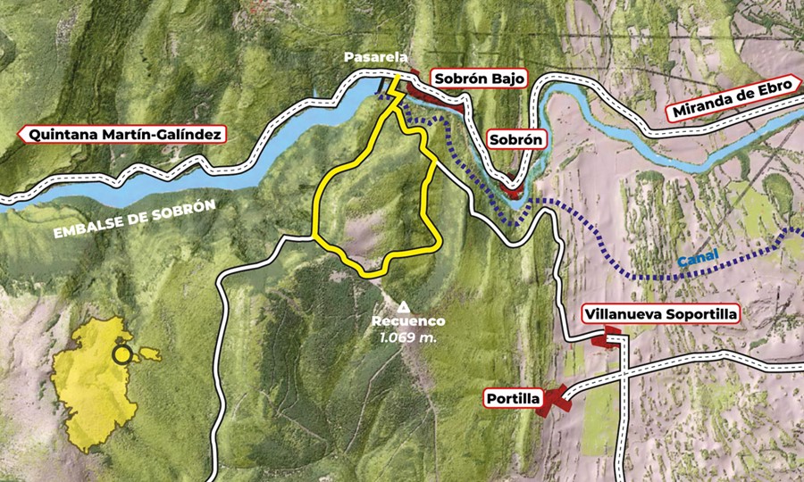 El sector burgalés de las Hoces de Portilla/Sobrón está englobado dentro del Parque Natural de los Montes Obarenes-San Zadornil y ofrece al visitante una serie de impactantes sorpresas que difícilmente podrá olvidar. Durante más de siete kilómetros el río Ebro se ha abierto paso a través de la gran bóveda anticlinal que cierra por oriente el Valle de Tobalina, formando un profundo e impresionante cañón que en algunos puntos alcanza un desnivel superior a los 300 metros de altura. La alternancia de capas de distinta dureza ha condicionado el desarrollo de numerosas repisas y covachones que cuelgan de manera espectacular de los verticales acantilados que forman la garganta.
