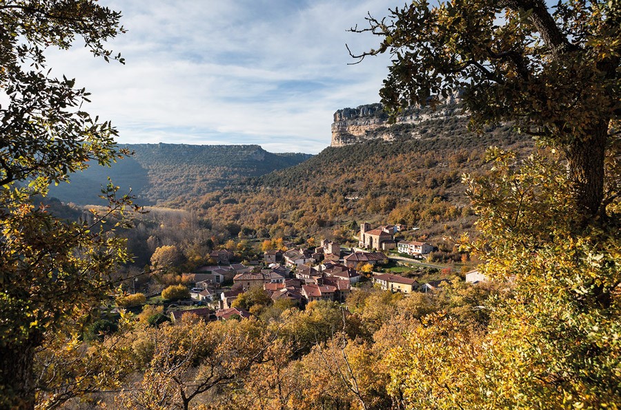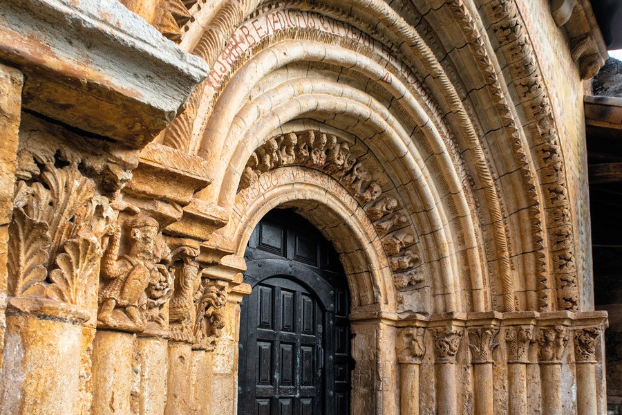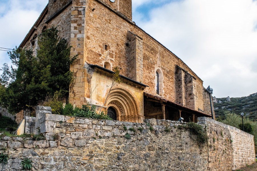 En el verde atrio de la iglesia de Escalada, elevado sobre una terraza desde la que se divisa buena parte del noble caserío de la localidad y del bello entorno paisajístico, llama la atención una atrayente portada. Sin duda, una de las más interesantes joyas románicas que se asoman al Cañón del Ebro.
