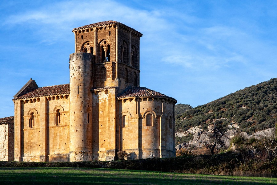 Su estructura armónica y sólida responde a las características típicas del románico burgalés: una sola nave, ábside semicircular y torre de dos cuerpos sobre la cúpula. Tanto en su portada como en sus numerosas ventanas, capiteles y canecillos se concentra una abundante y representativa escultura.