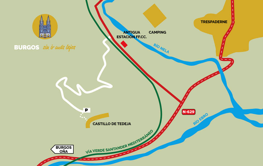 A la salida del impresionante desfiladero de La Horadada y en la misma confluencia de los ríos Ebro y Nela se alza el caserío de Trespaderne. Secular cruce de caminos, en sus inmediaciones se localizan las ruinas de una de las fortalezas más nombradas y con mayor contenido histórico de toda la alta Castilla: el castillo de Tedeja.