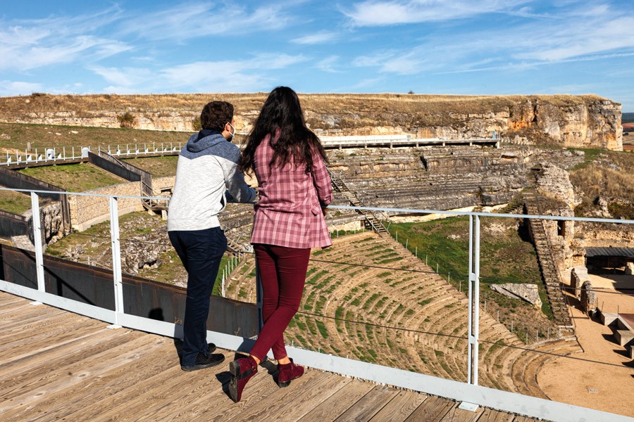 Los romanos ya se dieron cuenta hace dos mil años de que este rincón burgalés de la Ribera del Duero tenía mucho futuro con el vino. Y fundaron la ciudad de Clunia Sulpicia, que puede presumir del teatro de mayor capacidad de toda Hispania. A un paso, rodeados de añosos viñedos, se alzan Peñaranda de Duero y el monasterio de La Vid, dos auténticos hitos monumentales de película.
