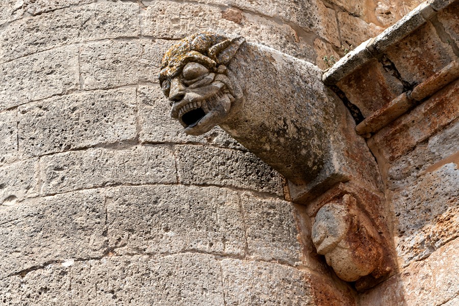 La decoración exterior —influida por el último y arcaizante románico y el sobrio estilo cisterciense— se reduce a unos arquillos ciegos que recorren los muros de la cabecera, a varias hileras de sencillos tacos de piedra bajo los aleros y a una llamativa y aislada gárgola rematada por la cabeza de un demonio.